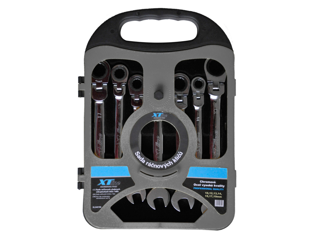 XTLINE Sada očkoplochých ráčnových kloubových klíčů, chrom 72 zubů, 7 dílů | 10-19 mm, plastový obal