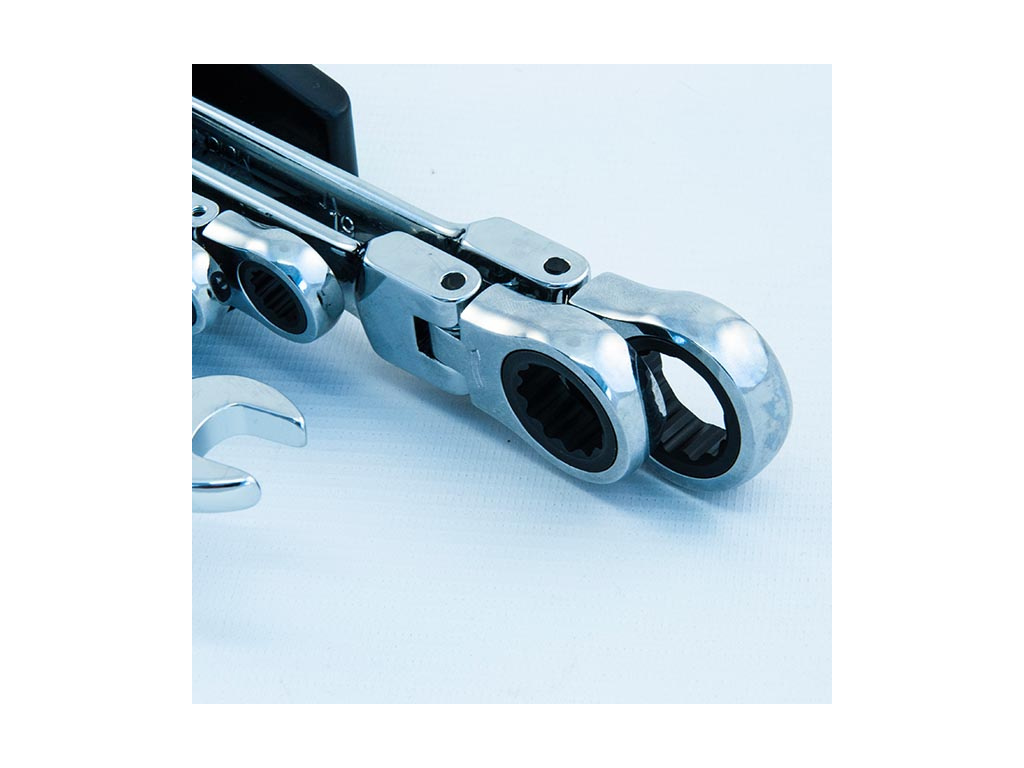 Sada ráčnových klíčů kloubových je určena pro utahování a povolování bez sejmutí klíče z matice.
