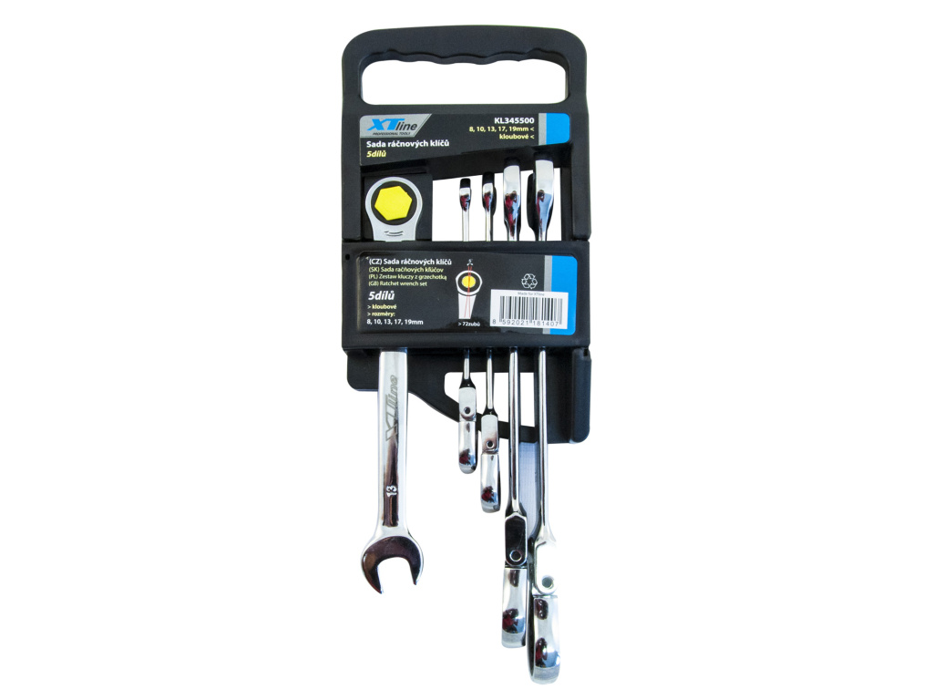 XTLINE Sada očkoplochých ráčnových kloubových klíčů 72 zubů, 5 dílů | 8-19 mm, plastový držák