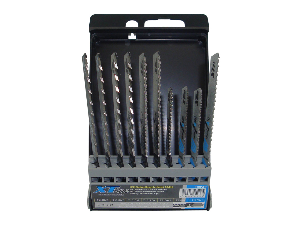 Sada 10 plátků do přímočarých pil pro řezání dřeva, kovu a plastů.
