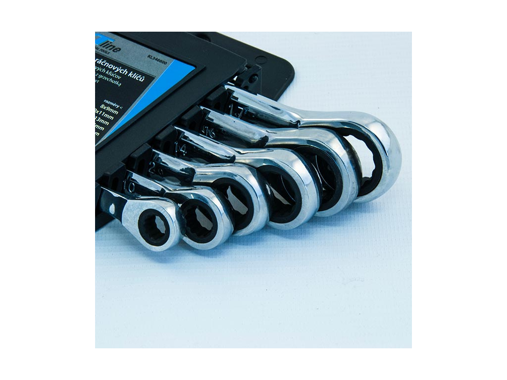 Sada ráčnových klíčů oboustranných je určena pro utahování a povolování bez sejmutí klíče z matice.
