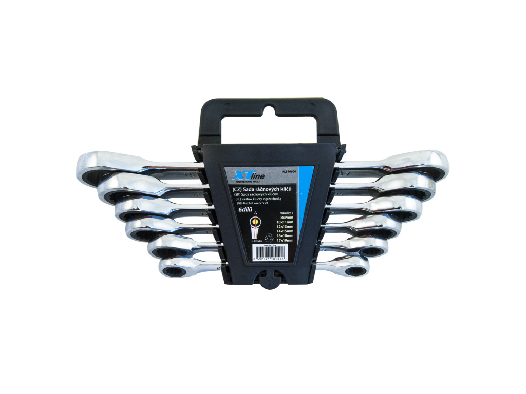 XTLINE Sada ráčnových klíčů oboustranných 72 zubů, 7 dílů | 8-19 mm, plastový držák
