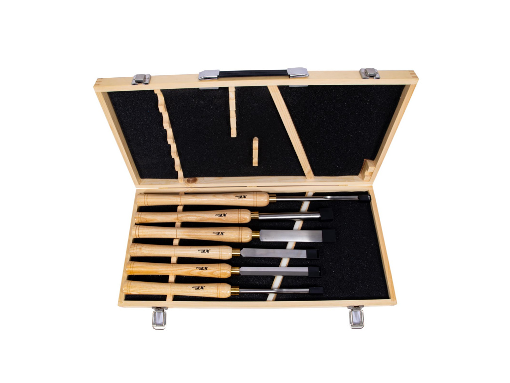 XTLINE Sada struhů s dřevěnou rukojetí 6 dílů (soustružnická dláta) | dřevěný box