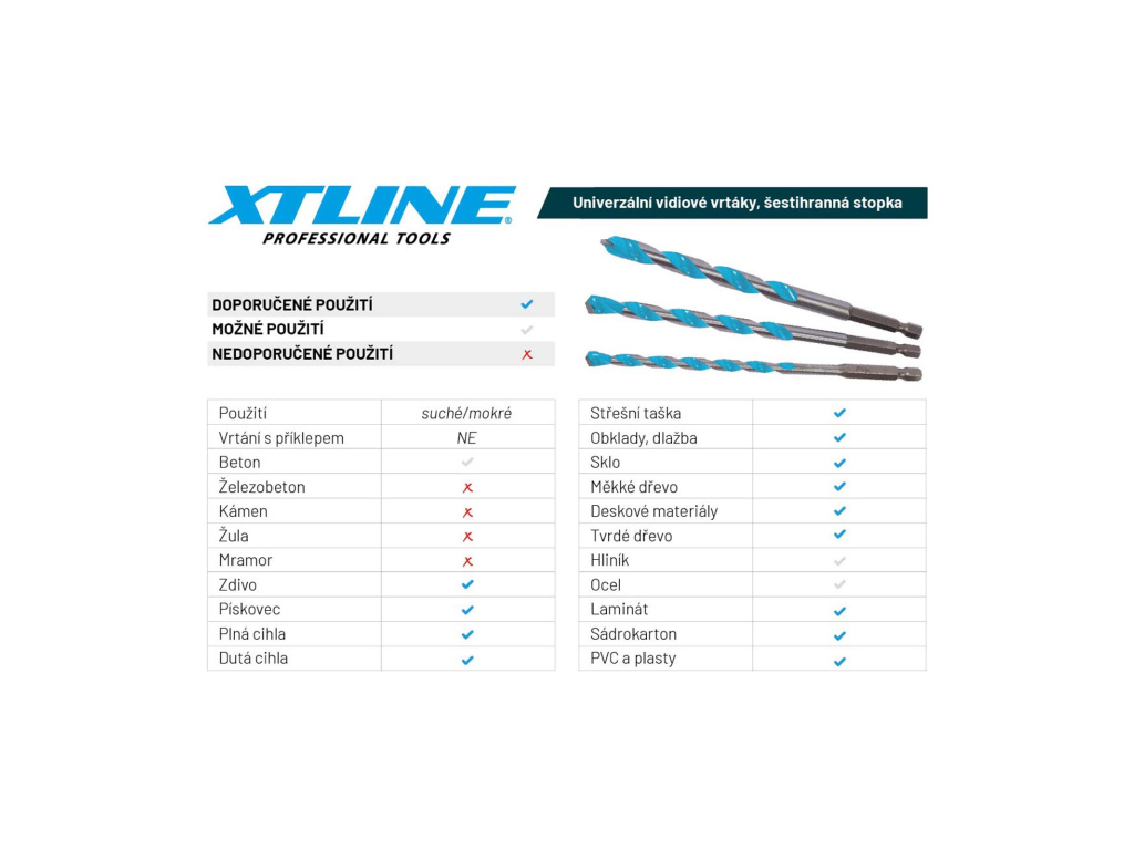 XTLINE Sada univerzálních vidiových vrtáků, šestihranná stopka (1/4") 5 dílů | 5-12 mm, plastový obal