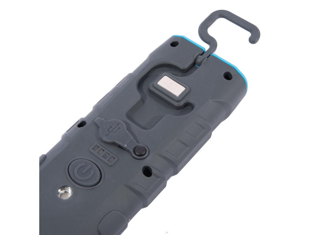Robustní montážní nabíjecí svítilna s magnety, háčkem a kloubem. Pogumovaný povrch zajišťuje pohodlnou manipulaci. Hlavní světlo doplňuje praktická horní LED dioda pro přímý svit. Nabíjecí port USB-C. USB kabel je součástí balení. Doporučená nabíječka: 5 V/2 A