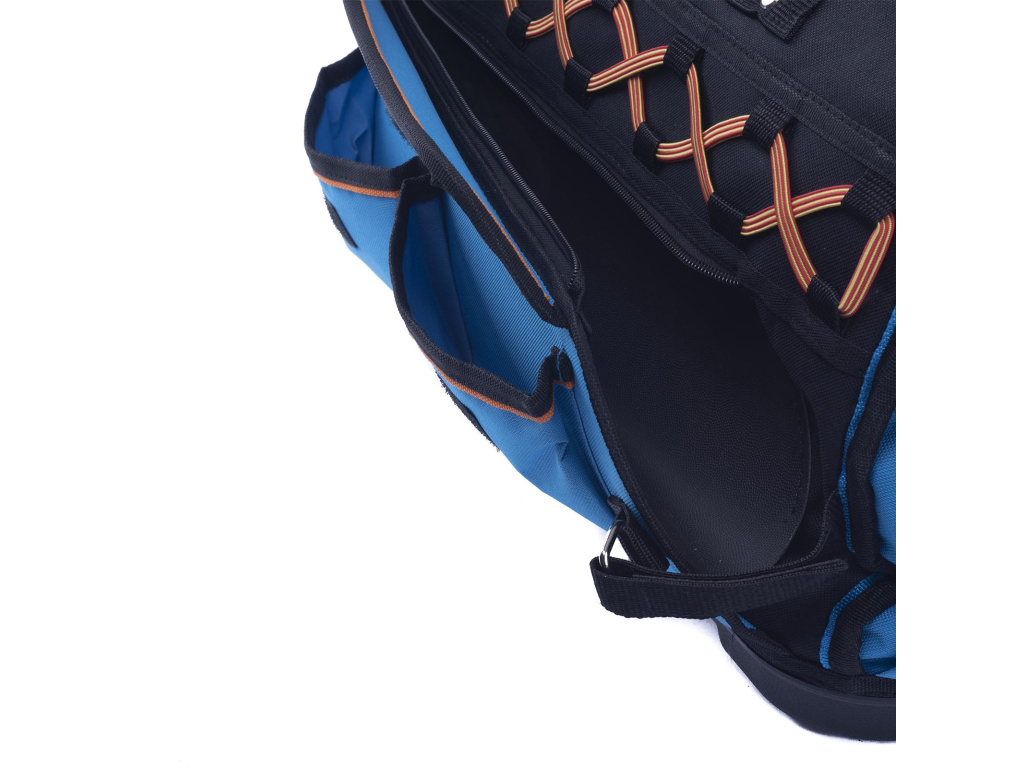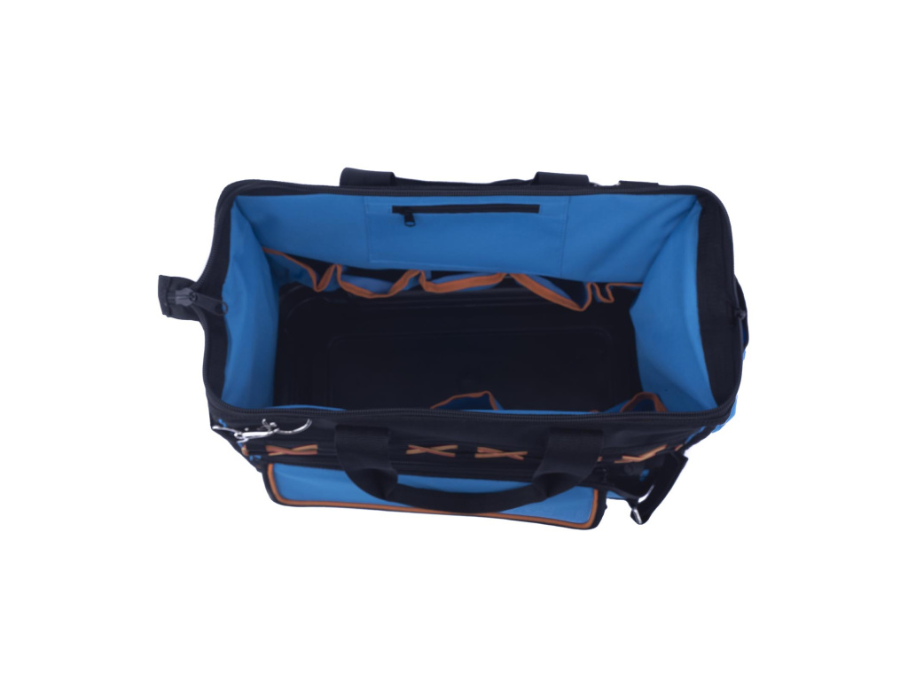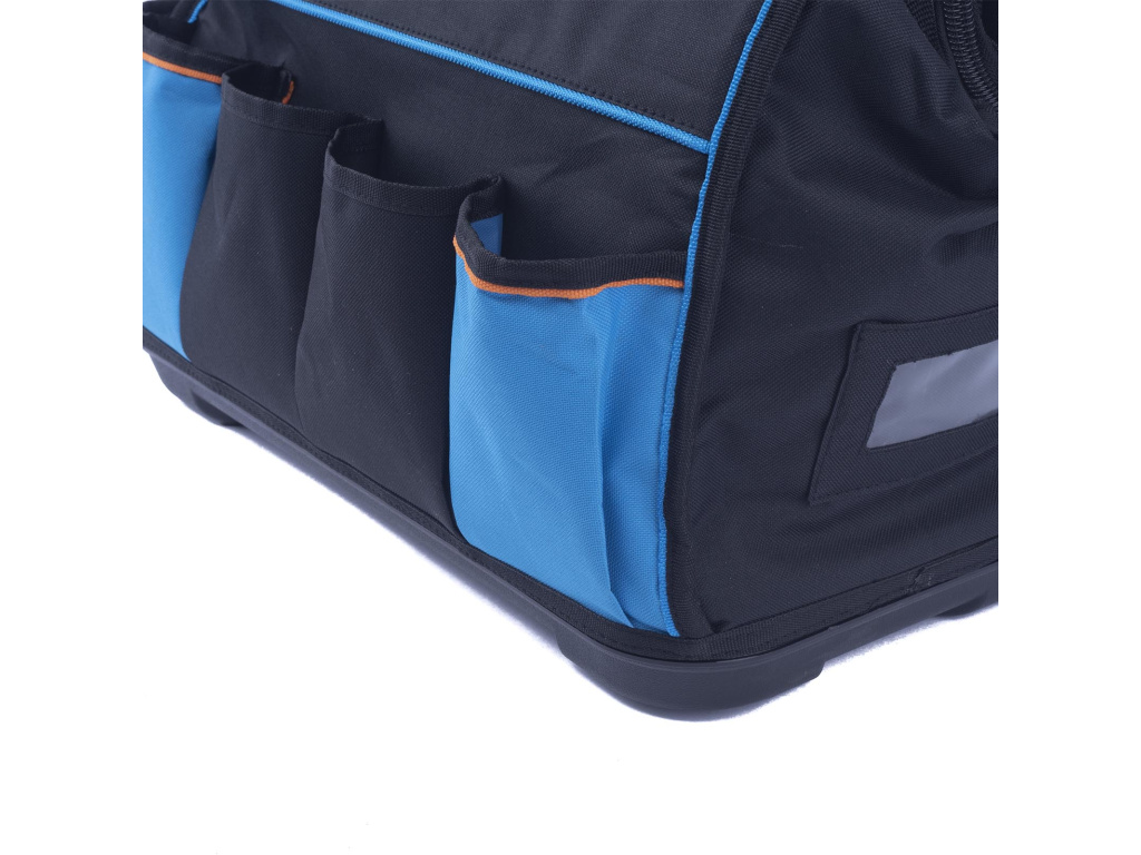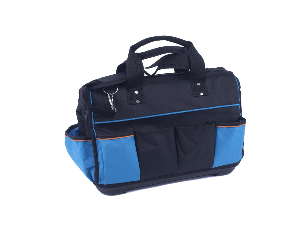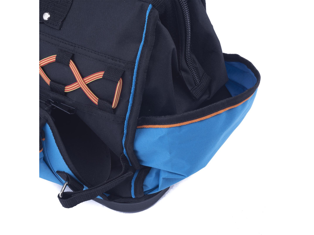 Taška na nářadí má 7 venkovních kapes, vyztužené PVC dno, přední gumový popruh, stahovací pásek na suchý zip, hlavní kapsu s vnitřním organizérem a 2 kovové očka pro popruh přes rameno. Umožňuje pohodlné přenášení nářadí a nástrojů.