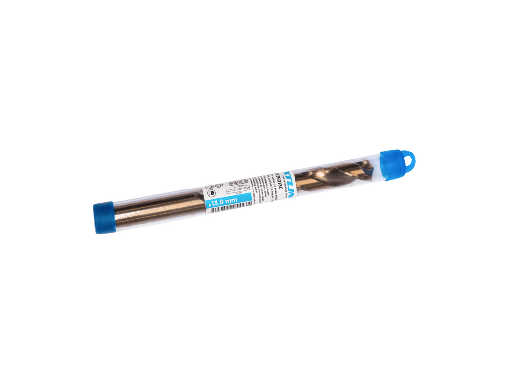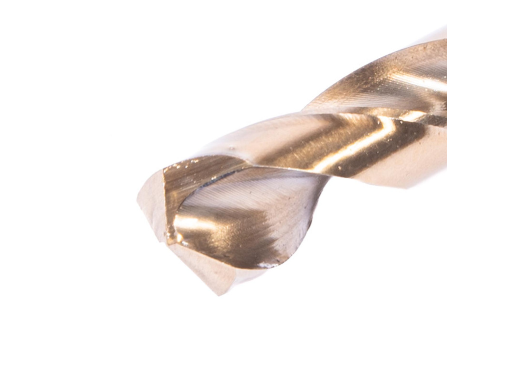 Vrták do kovu vyrobený z rychlořezné oceli HSS s příměsí 5% kobaltu, která zvyšuje tvrdost vrtáku a prodlužuje jeho životnost. Dělená špička broušená pod úhlem 135° vyžaduje menší tlak při vrtání a zabraňuje pohybu vrtáku po povrchu. Vhodné pro vrtání oceli, nerezové oceli, litiny a jiných kovů. Upnutí vrtáku na válcovou stopku a lze opětovně brousit. Vrták je uložen v plastové tubě. Disponuje špičkou vrtáku SPLIT-POINT 135° pro dokonalé vystředění. Vybroušená šroubovice rychle odebírá vrtaný materiál.