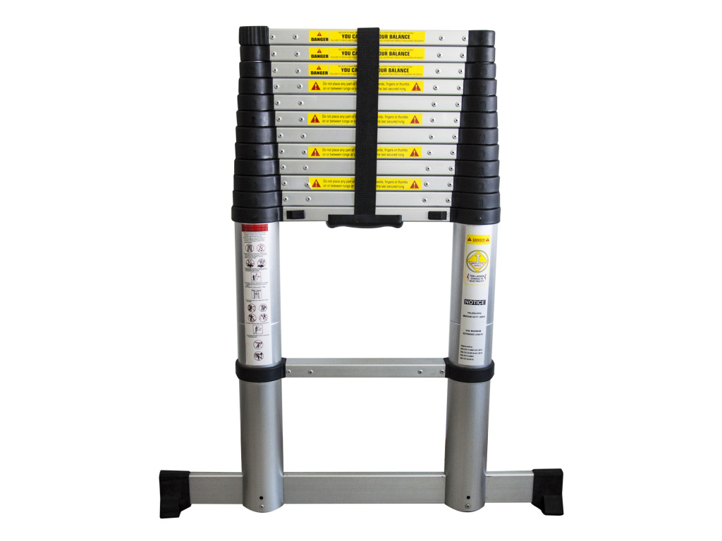 Teleskopický žebřík je velmi praktický všude tam, kde není dostatek prostoru. Díky jeho skladnosti a nízké hmotnosti je ideální pro převážení. Při vysouvání žebříku se jednotlivé příčky samy zaaretují a stlačením zámku je lze opět uvolnit. Automatické zámky při vysouvání žebříku. Nenáročný na přepravní místo a skladování. Variabilní nastavení výšky až do 3,8 m. Stabilní základna. Žebřík lze vysunout také pouze částečně.